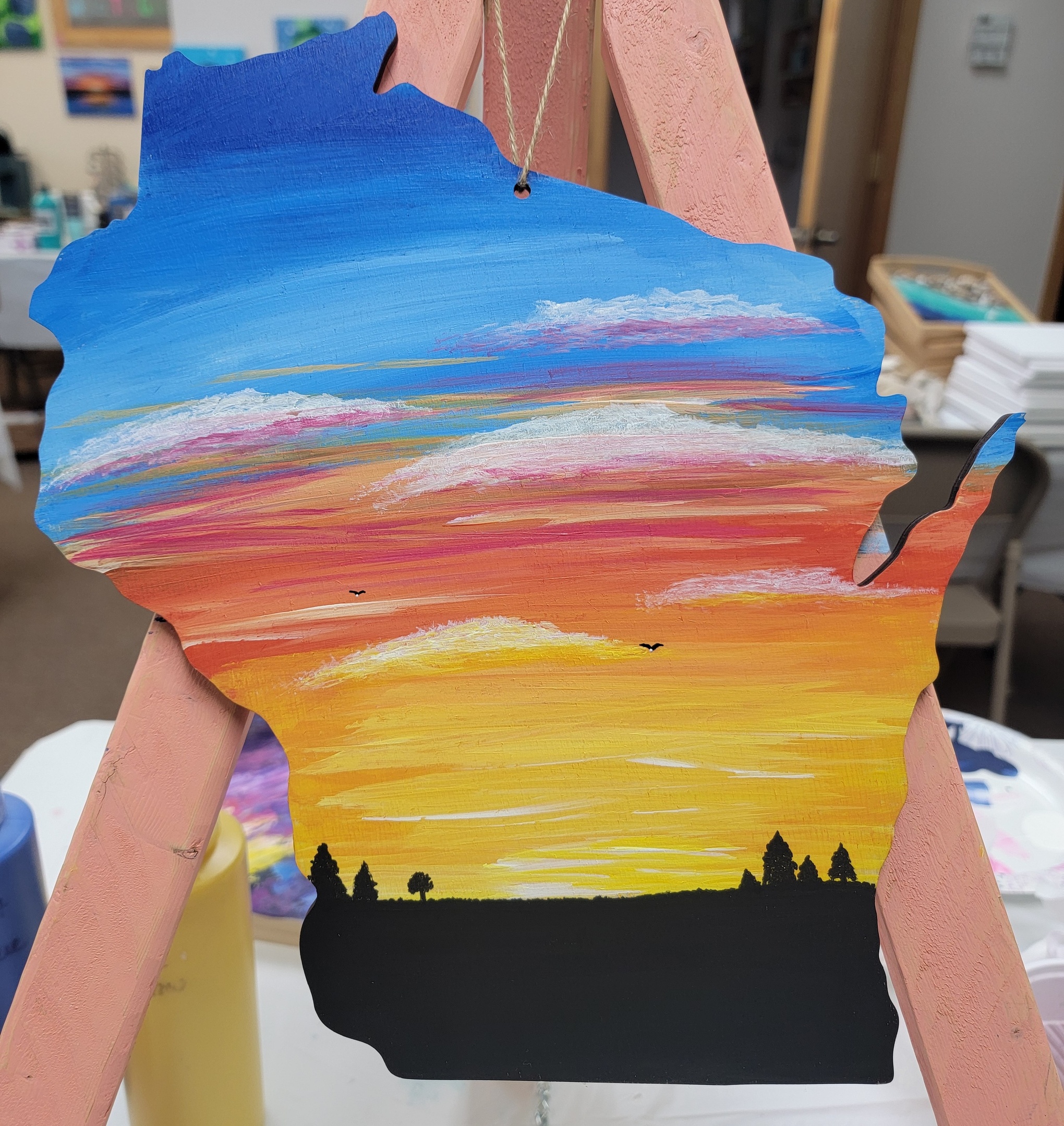 Class max is ? people and approx 2 hours. We are painting on a 12" Wood Wisconsin or 13" Wood Minnesota in whatever colors you choose! I will walk you through this fun painting and help along the way! No experience necessary! Let me know if you're coming with friends, and I will make sure you sit together. Sign up by Calling: 715-349-5169, Email: jellybeanascp@gmail.com, Facebook Messenger or Pay Ahead By Clicking Here. (If you pay ahead and cannot make the class your payment will be put on a Jellybeana's Gift Card)