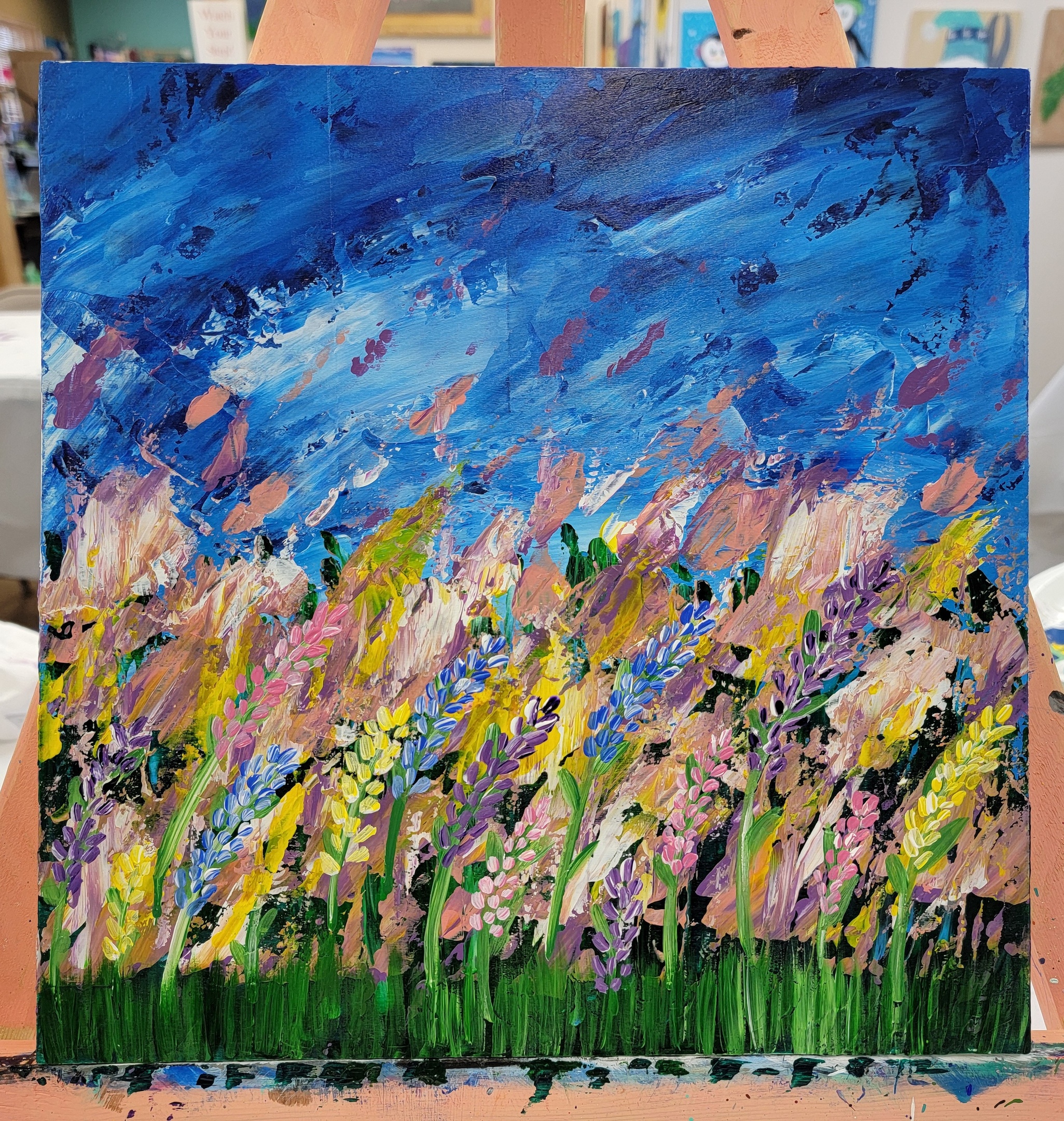 Class max is 14 people and approx 2 hours. We are creating this on a 12x12 Wood Panel in whatever colors you choose! The background will be created using a pallet knife. Then we will add the lupine! This is a fun, easy project!! I will walk you through this painting and help along the way! No experience necessary! Let me know if you're coming with friends, and I will make sure you sit together. Sign up by Calling: 715-349-5169, Email: jellybeanascp@gmail.com, Facebook Messenger or Pay Ahead By Clicking Here. (If you pay ahead and cannot make the class your payment will be put on a Jellybeana's Gift Card)
